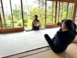 一週間前から天気予報をずっと気にしてチェックしていましたが、予報はずっと雨でした雨でもいいように屋内でも撮影できる近江商人屋敷を選んだのですが、やっぱり立派なお庭で撮れないと思うと残念だなぁとけれども、撮影は1時間半ぐらいでしたが、その間の30分ほど雨がやんで外でも撮影できましたしかも雨で濡れて緑がキラキラしてすごく綺麗!