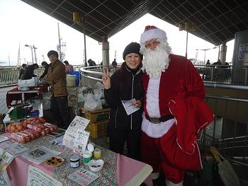 12月の浜大津こだわり朝市にサンタクロース登場