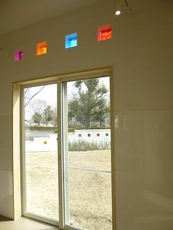 濃いカラーのガラスブロックで鮮やかに色を出す