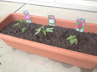 そうだ、そうだった。。。説明し忘れていたよ。プランターが4つになるから、その間に一個一個植えようって思っていることを。。