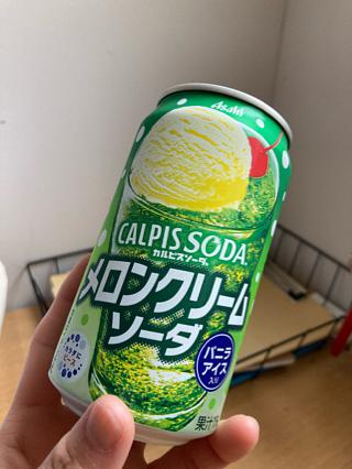 普段なら、あまり選びそうではないのですが、なにせ暑かったのでカルピスソーダのメロンソーダ バニラアイス入り。。カルピスの味?アイスの味?・・・なんか懐かしい味だったと思います