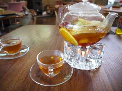 優雅に高原のカフェで有名なフルーツティーを堪能する。