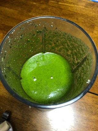 アクが強いので色が悪くなるかな?と思ったのですが、綺麗な緑のソースになりました