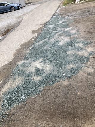 穴といってもぽっかり丸に空いた穴ではなく、砂利の駐車場なので、車の出入りで少しずつ少しずつ砂利が減ってきます。そのため、道路のアスファルトと砂利の合間に溝ができていき、それがどんどん大きくなって、雨が降ると大きな水たまりができてしまいます。
