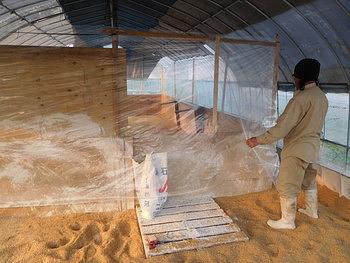 育雛は温度管理が重要。周囲にビニールを張って、温度を逃がさないようにしました。