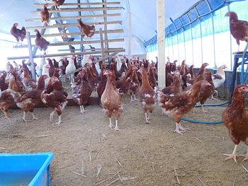 昨年10月に来て、5か月。来月中旬くらいから卵を産み始めます。最初はSサイズの小さな卵を産みますよ。