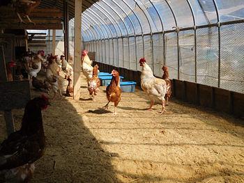 鶏舎内の埃を洗い流し、床には発酵を促すEM資材、米ヌカ、竹粉、もみがらなどを敷いています。