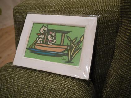 うちら夫婦が水郷めぐりを楽しんでいるという様子をねこちゃんで切り絵にしてもらったものですの