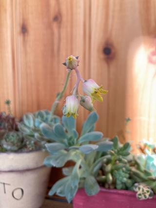 暖かいからか多肉植物がにょきにょきしてきているのですが、一本びよ~んと伸びたとこからこんな可愛い花が咲きました