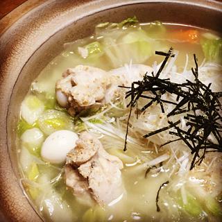 ・・・と言っても、丸鶏買ってくるのも大変なんで、手羽元で参鶏湯風!しかも一品で済むように鍋で~!