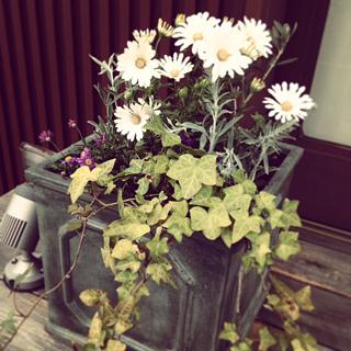 BENTO.の向かって左においていた、寄せ植えなのですが・・・いつも「営業中」の札が刺さっているやつです