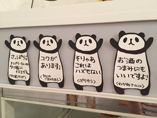 冷蔵庫の上には、これまたmasuの作ってくれた、パンダ達がメニューに一言添えてくれてます