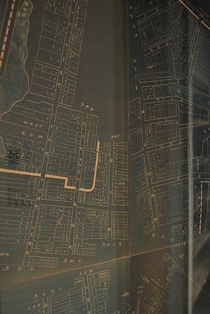 ガラスに挟まれているのは・・・・この建物の界隈の、古地図です。