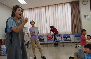 普段は祝日や夏休みなど、幼稚園や小学校のお休みの時はママラスの練習もお休みなんですが、今年は夏休み中に2つ発表の依頼をいただいたので、今日は子どもたちを連れての練習がありました。