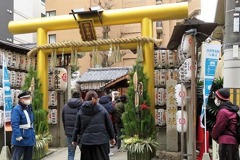 次の角を左折すると右手前方に御金神社が見てきました。 列を作ってお参りしていました。