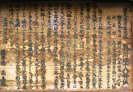 勘定すると「48体にどうも足りない」ようだ。更に表示板を詳しく読んでみると「48体あった石仏のうち13体が、大津市坂本の慈眼大師廟に移され、2体は盗難、ここ鵜川には33体」。