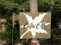 ガリバー少青年旅行村を遅めの出発となった。右側の林道から入山し、側溝沿いに付けられた脇道を伝った。雑林帯に入ると、樹木名の入った表示板が、あっちこっちにけられ、退屈しなかった。ミズナラとブナの見分け方のひとつとして、「ミズナラは、幹の縦方向に大きな割れ目がある」ことを知っていたので、確認してみると意外に一致していた。坂を登り切って、もみじ谷にやってきた。