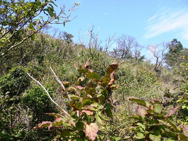 武奈が岳への最後の急登付近では、潅木が僅かになり、笹が多くなった。冬季の寒さ・積雪に耐えがたくなり 、植物も小型化してきた。