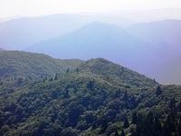 草地のドーム状の武奈ケ岳(標高1214.4M)は、比良山系の最高峰である。この名前の由来は、まさしくブナの名前に関連して付けられたのであろう。山頂からの眺望は、360度展望ができた。 ほぼ南の方向に、比良山系のもう一つのシンボルである蓬莱山(1174m)と打見山(1108m) などの山並みがみえた。 数年前、冬季に通過した西南稜も懐かしい。
