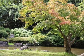 日本庭園の名のとおり、至る所にきれいな庭園があります。庭園を眺めながら、おにぎりを食べているカップルも。。。。