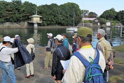 出発後、大津城址を訪れ簡単な歴史の説明を受け、三保が崎水位観測所、第一疏水取水口へ