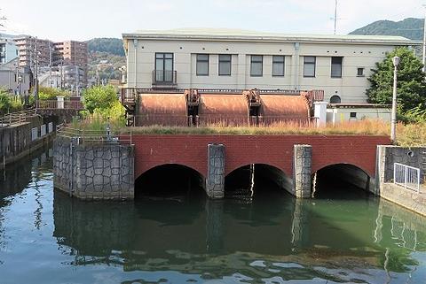 疏水公園、安朱橋を通り、安祥寺川と第二疏水の立体交差地点へ(第二疏水は関の下を流れている)