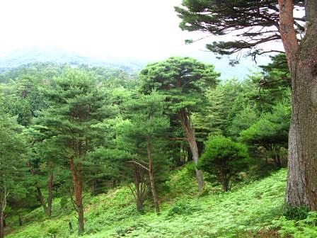 湖南市の南西部、標高226.6mの美松山の南西斜面一帯に「美し松」が約200本の大小のアカマツの変種の美松が群生している。ウツクシマツは、一本一本を眺めると、主幹がなく、1本の根から枝が地表近くで放射状に分かれ、樹形は傘を逆さにしたような特異なかたちである。この松、ウツクシマツと呼ばれるのは、松そのもののかたちが美しいと言うより、ウツクシマツだけの「純林」全体が美しくしい。緑の林床から、赤っぽい樹幹は奇妙な樹形をし、素直に空に伸びている様が見事であり、独特の世界が広がっていた。この鮮やかな緑の空間で、ゆっくりと時間を過ごした。