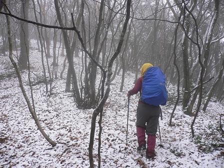 赤いテーピングもほとんど見られなくなり、視界が最悪の状態で進んでいった。降雪は、少し和らいできたが、寒さは依然かわらない。