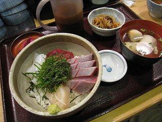 ホテルから歩いて10分ぐらいのところに福岡の市場があって、市場会館っていうビルの中にご飯屋さんが何店舗か入られてるうちのひとつ魚がしさんの海鮮丼