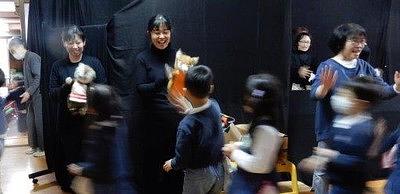 お人形さんとのハイタッチのバイバイは、人形劇恒例です。