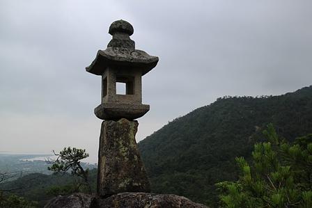ガラガラの道であるの岳観音へ参拝道。石灯篭のあるガレ場にでた。振り向くと琵琶湖が一望。