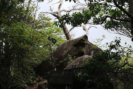 右手に白いガレの花崗岩が風化した白坂を見ながら、岳山の頂上についた。石室には観音さんが安置されているようだが確認しなかった。