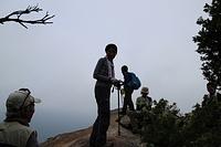 むしむしする灌木帯のアップダウンを繰り返し、岩阿沙利山 で昼食。ここで、丁度昼時になったこともあって、色んなハイカーで賑わっていた。我々チームと抜かれ抜いた若い三人娘は、ここでお別れです・・・・・・。