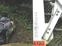 野洲川ダムから約100mの左側にところに、落石防止の鉄柱にマジックで「サクラグチ登山口」と書かれたところが、登山口である。気をつけていなければ見逃してしまう入口である。「ここが入山口」と疑うようなところだ。
