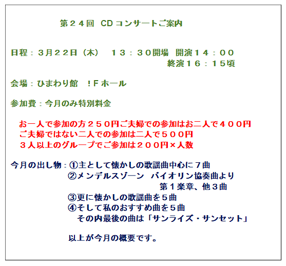 《CDコンサートの体験》を是非に、の気持ちから企画させていただきます。