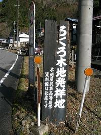 仕方なく、誰もいない「ロクロ木地発祥地」の立看板の近くでうろうろしていた。そこに、たまたま自動車が来た。