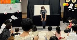 南草津図書館は普段の「おはなし会」より大きな会場で。