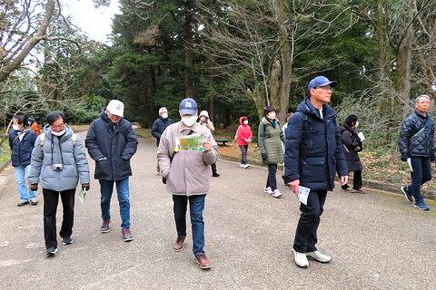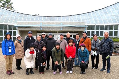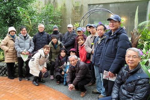 蠟梅の香りも楽しんで、目的地温室前での集合写真です。