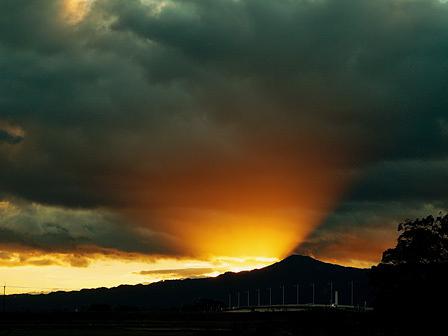 先日、比叡山の裾野に夕日が沈み、束の間、太陽の四方八方へ伸び出た