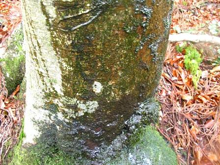 ブナの保水力は他の樹に比べて著しく大きいことは有名であるが、ブナの樹の構造自体が雨を集めやすくなっていることを知っている人は意外に少ない。こんなしぐれの時こそ、ブナ林の不思議な営みをつぶさに観られるチャンスかもしれないと思った。