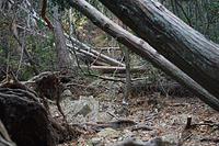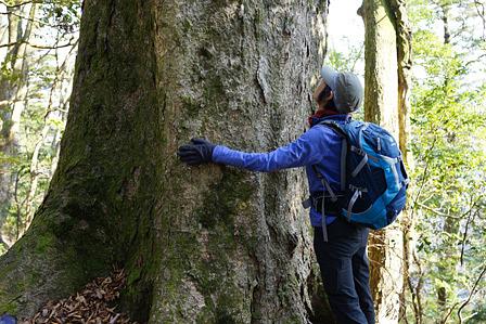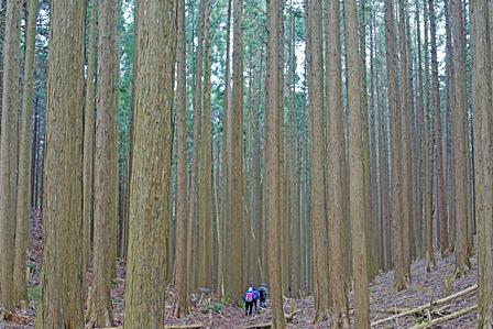 ”ユリ道”をたどり、貴船山(699m)に向かった。丹波では、緩い道を訛ってユリ道と呼ぶようである。確かに、山腹を巻くように設けられており、無理せず高みへと導いてくれた。道端のところどころに、人の気配を感じられる瓦の破片、そして北山杉に混じって自然林の巨木が見られた。この道には、古道の面影が漂っていた。