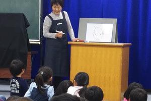 絵本と同じように,ホワイトボードに絵を描いておはなしが進みます。