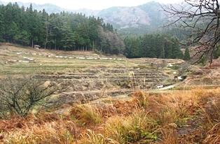 周りは日本の棚田百選の一つに選ばれた「畑」の棚田が広がっていた。傾斜に逆らわず階段状に作られた棚田は山際まで続き、稲は既に刈られていた。