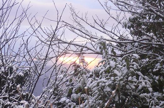 12月30日天気予報では夜間湿雪であり、初日の出は期待していなかったが、とに角、雲の隙間から元日の日の出が見られた。