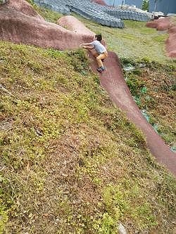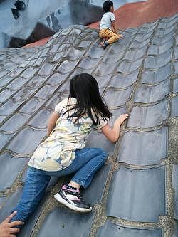 私と娘は滑って登れなかったですが、息子はおさるのようによじよじと