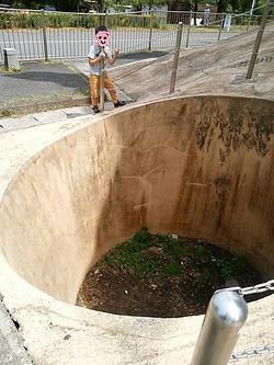 一番怖かったたて穴。大人の背よりたかいけど、チェーン半周しかしてないです、落ちたら一人では登れません。