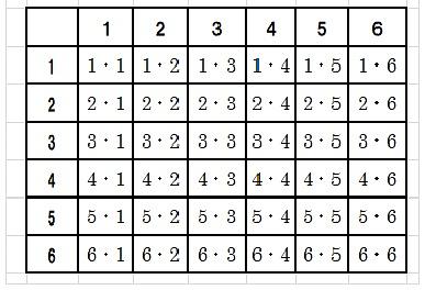 (表の1・1というのは一回目の出目が1二回目の出目も1の場合)