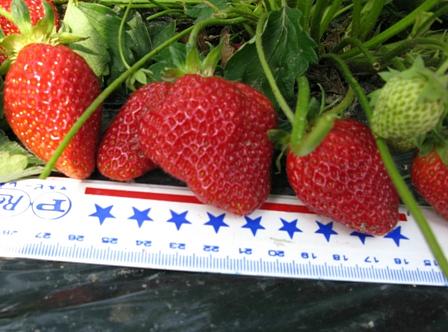 大粒ができるイチゴの苗(とちおとめ・女峰・おおみきなど)が色々出回っています。この大粒品種を試してみたのですが、ことごとく失敗に終わりました。現在、露地で作り易い「宝交早生」を栽培しています。この品種で「大粒ができないのか」挑戦しています。