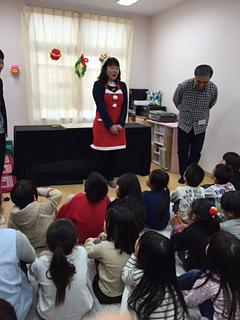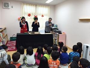 おはなしの後に、オカリナの演奏に合わせて赤鼻のトナカイを一緒に歌いました。