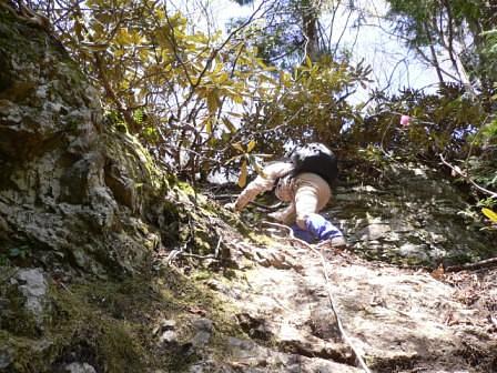ひとつ難所を越えると新たな難所が現れる。文字通り一直線につけられた登山路を喘ぎながら進むことになった。